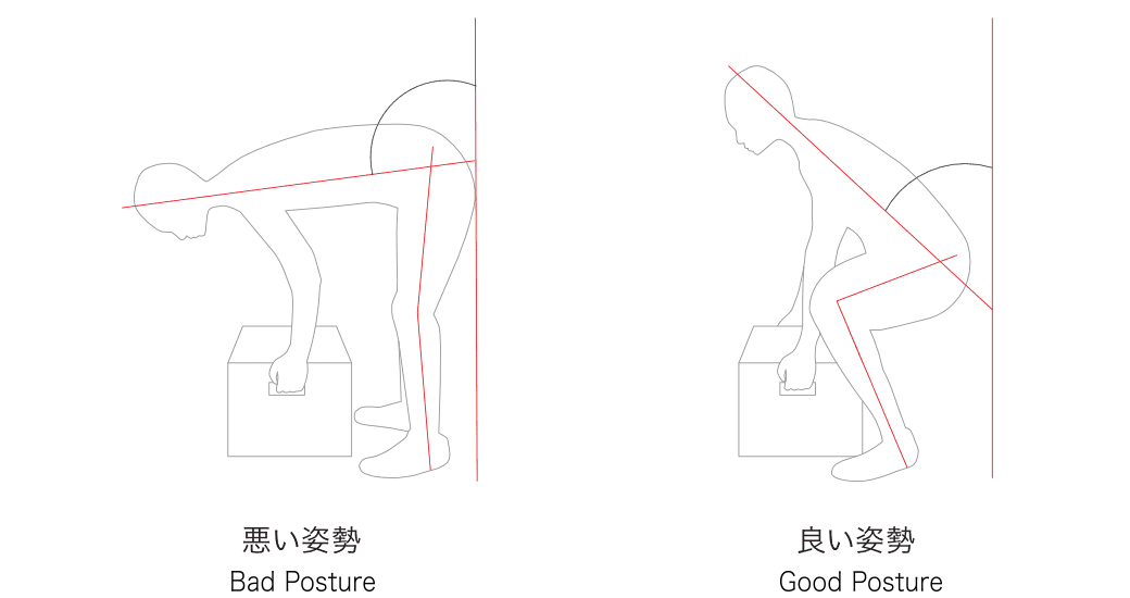 腰の悩みの要因は、頻繁な持ち上げ動作や前かがみ動作と言われています。日常作業で頻繁に行われる悪い姿勢を理想的な姿勢に導きながら、腹筋や背筋などの筋肉を正常に機能させ、身体にやさしく腰の負担を軽減させます。